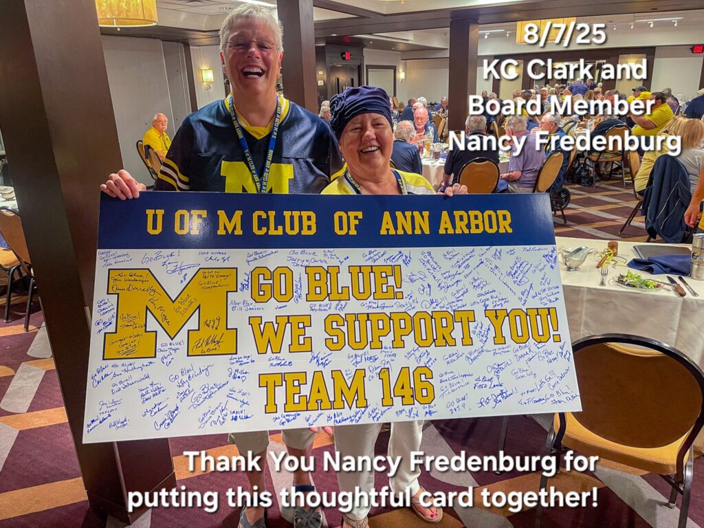 Nancy Fredenburg created this poster to support Team #146. It was signed by the membership and presented to Head Coach Sherrone Moore.