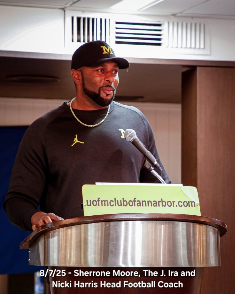 Our guest speaker was Sherrone Moore, The J. Ira and Nicki Harris Head Football Coach.