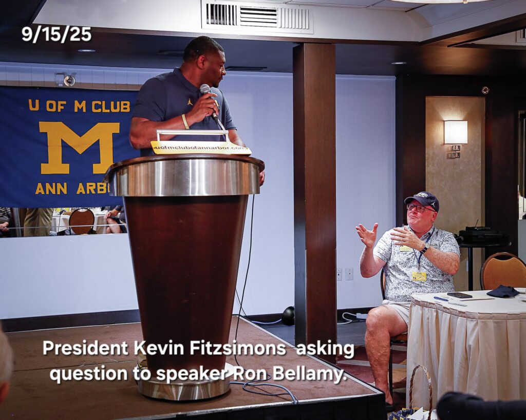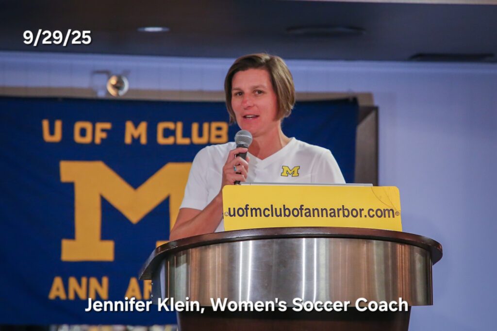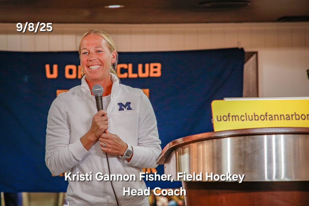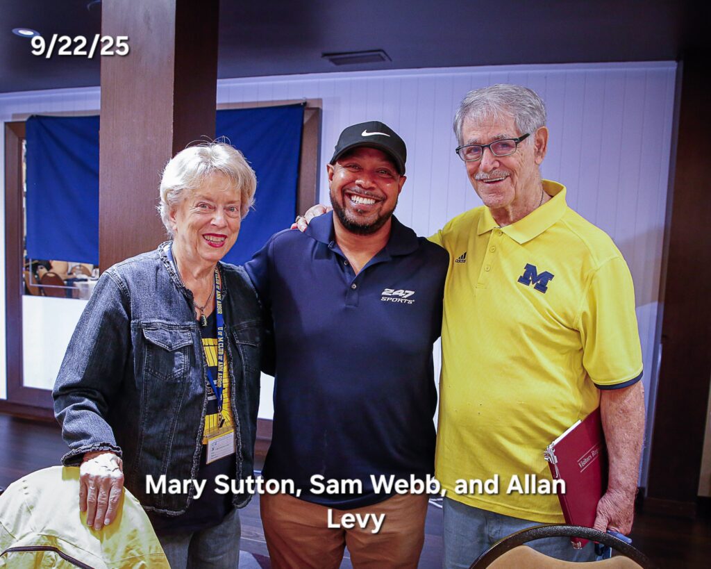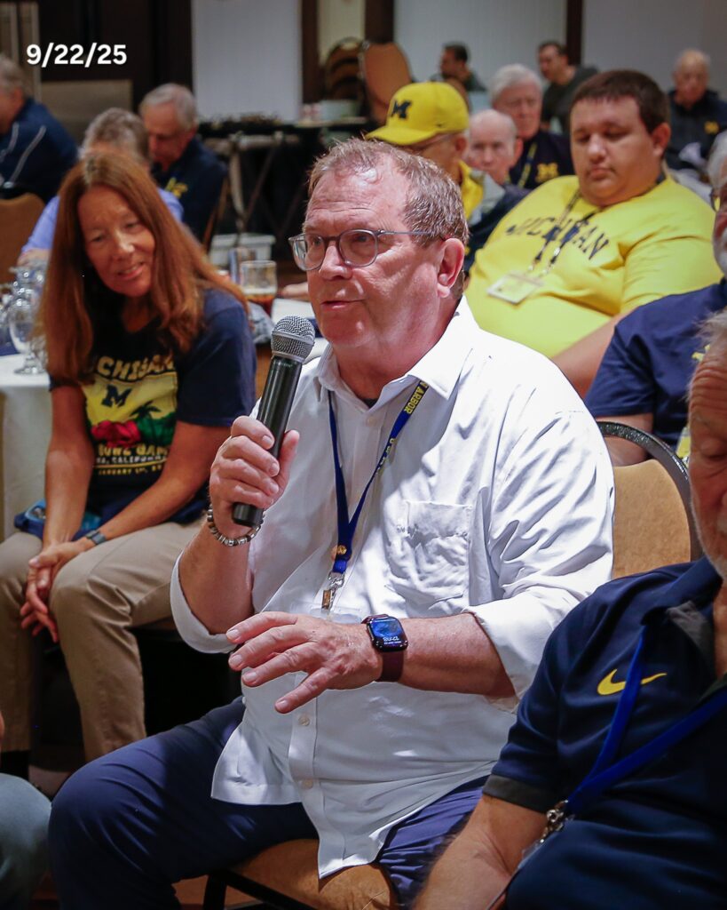 Other photos from the meeting include members asking questions of our speakers, coach Klein speaking with members after the meeting to answer questions and it's always great to get photos of members with our Michigan coaches.