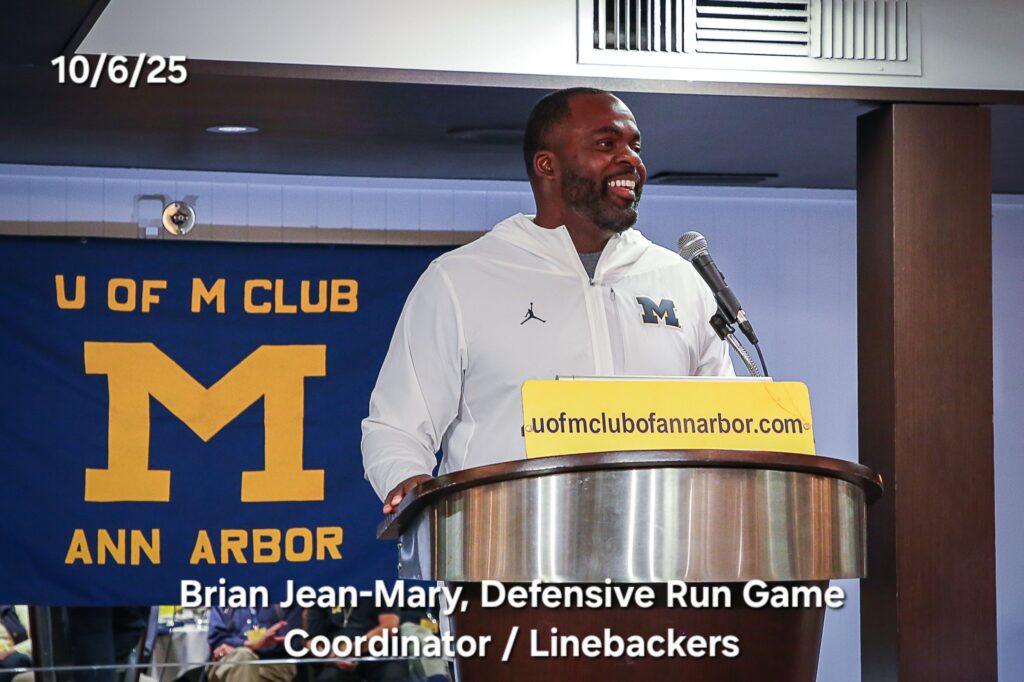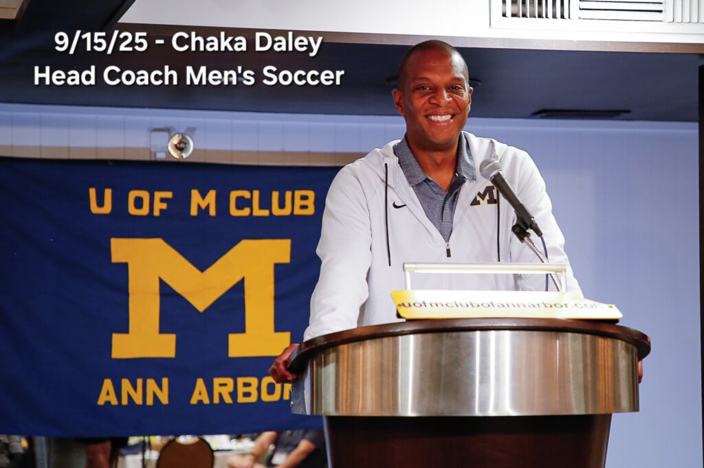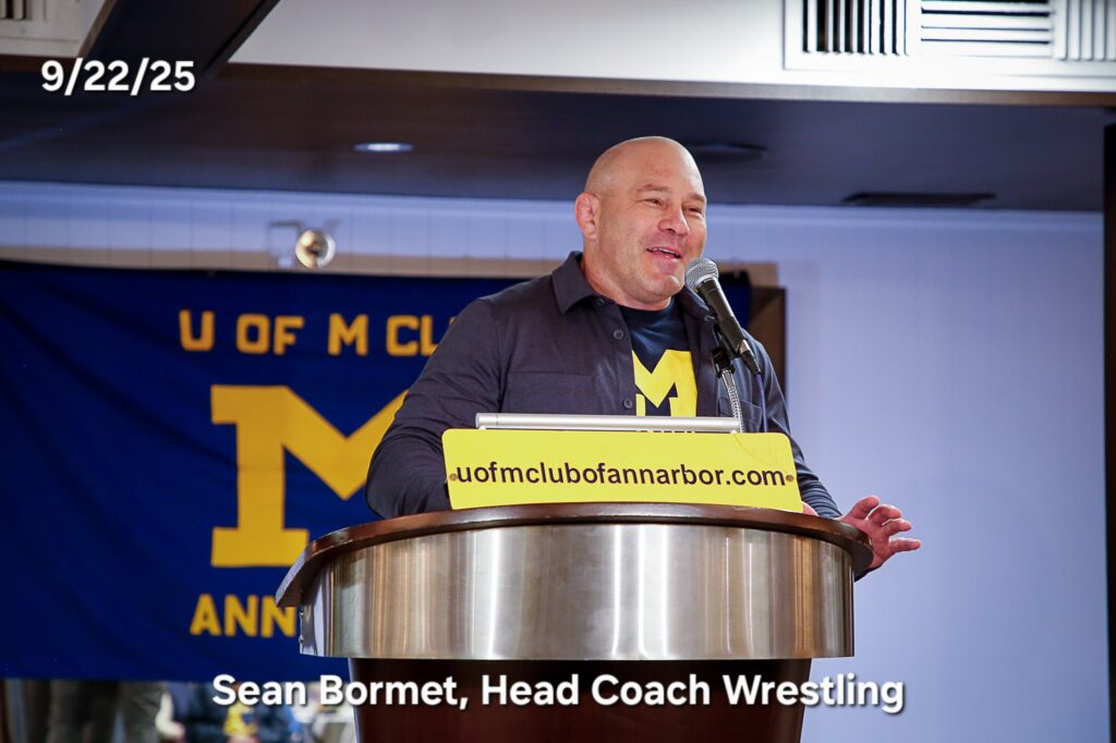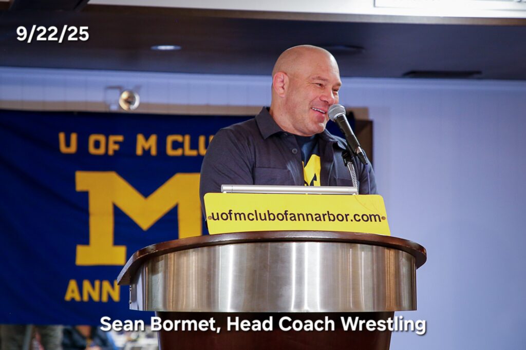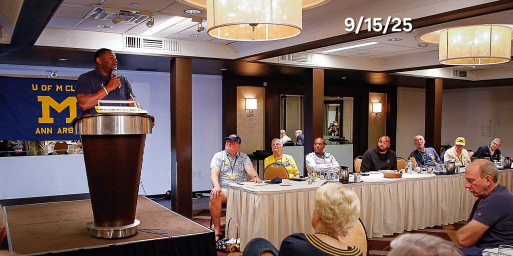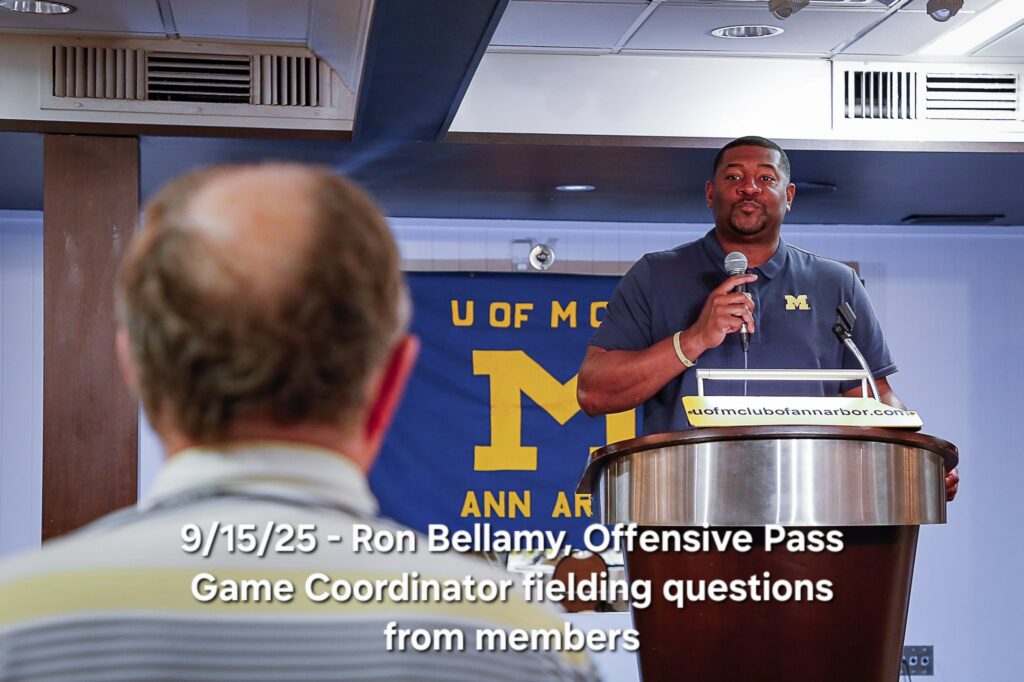 Other photos from the meeting include members asking questions of our speakers, coach Klein speaking with members after the meeting to answer questions and it's always great to get photos of members with our Michigan coaches.