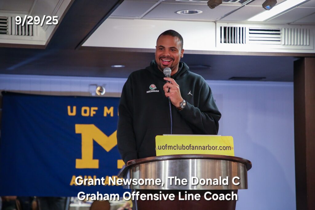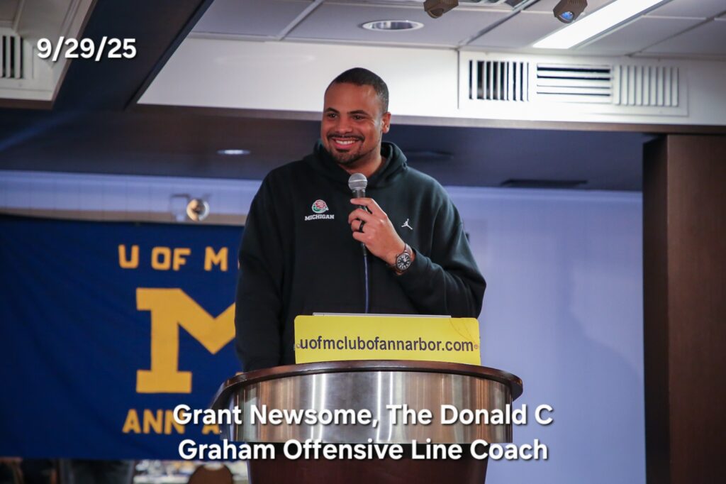 Grant Newsome, The Donald C Graham Offensive Line Coach was our first speaker today.
