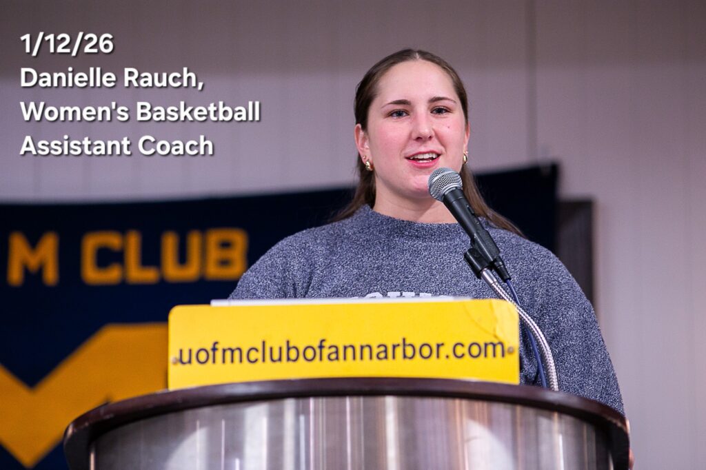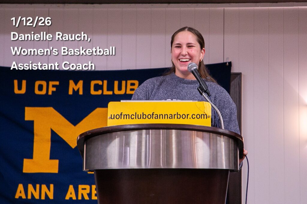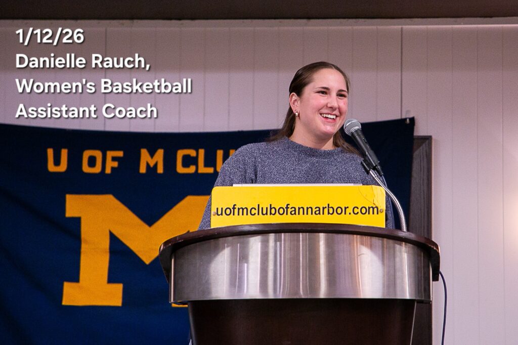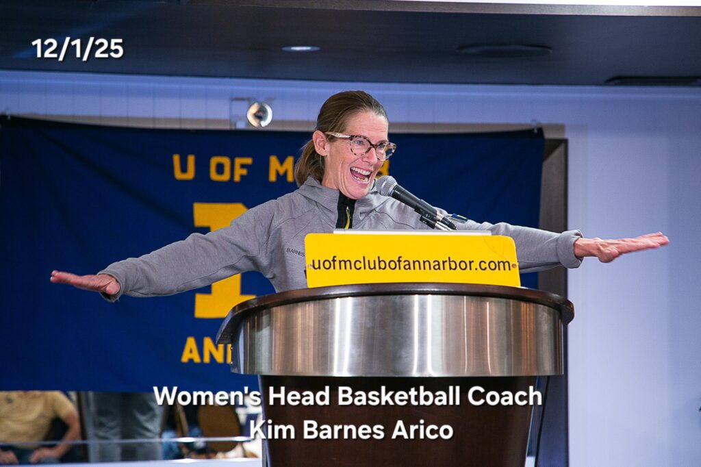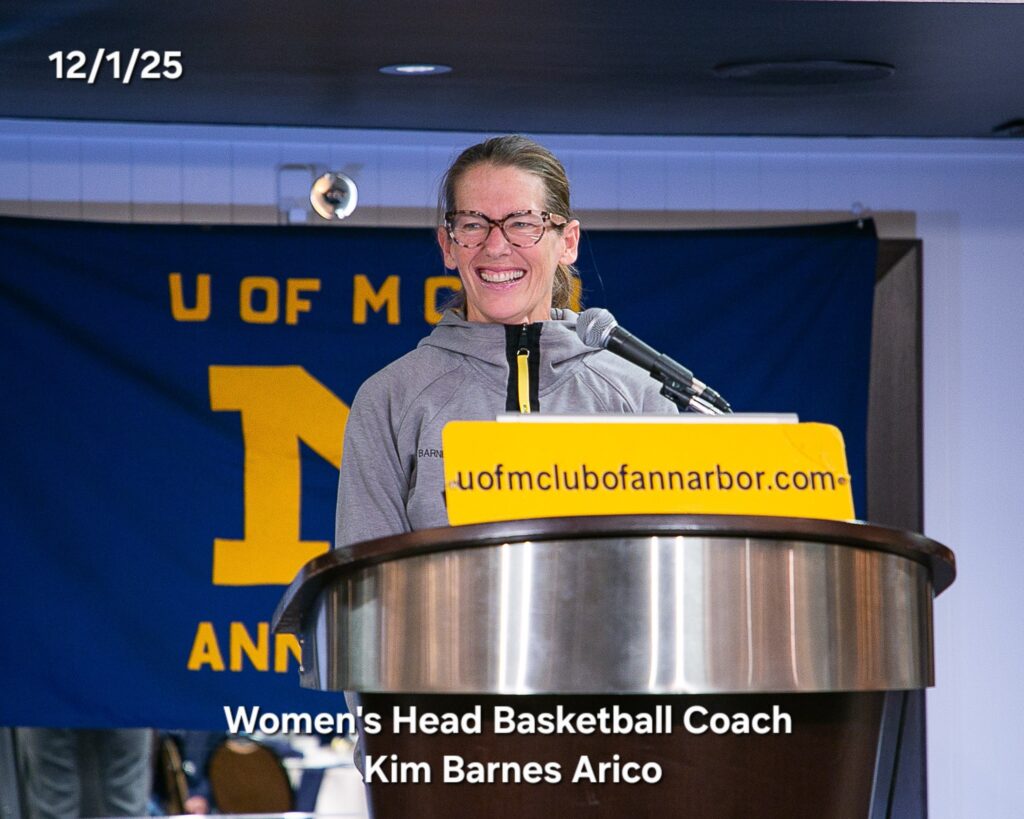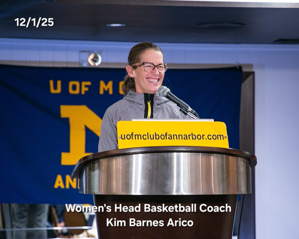 The second speaker today was veteran Women's Head Basketball Coach Kim Barnes Arico. She has finished her 13th season as head coach and is the winningest coach in program history with 284 wins in her 13 years. She has led her women's basketball teams to 12, 20 win seasons and she is the only coach in program history with 200 wins at Michigan. Currently, the 2025-2026 record for Women's Basketball is 8 wins and 1 loss with a 4 game winning streak.