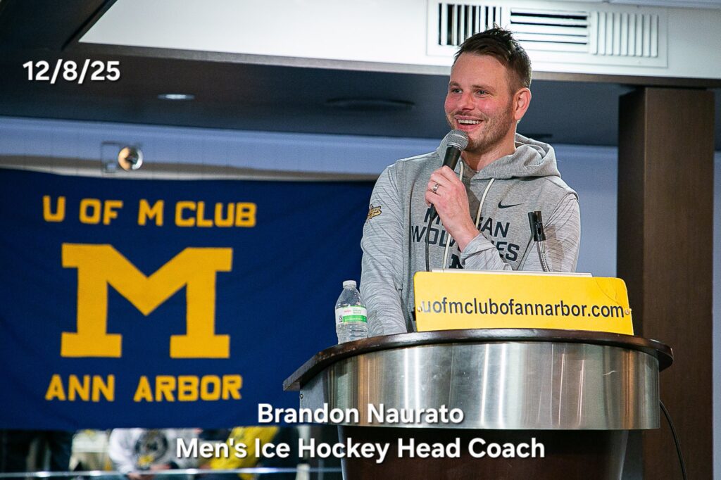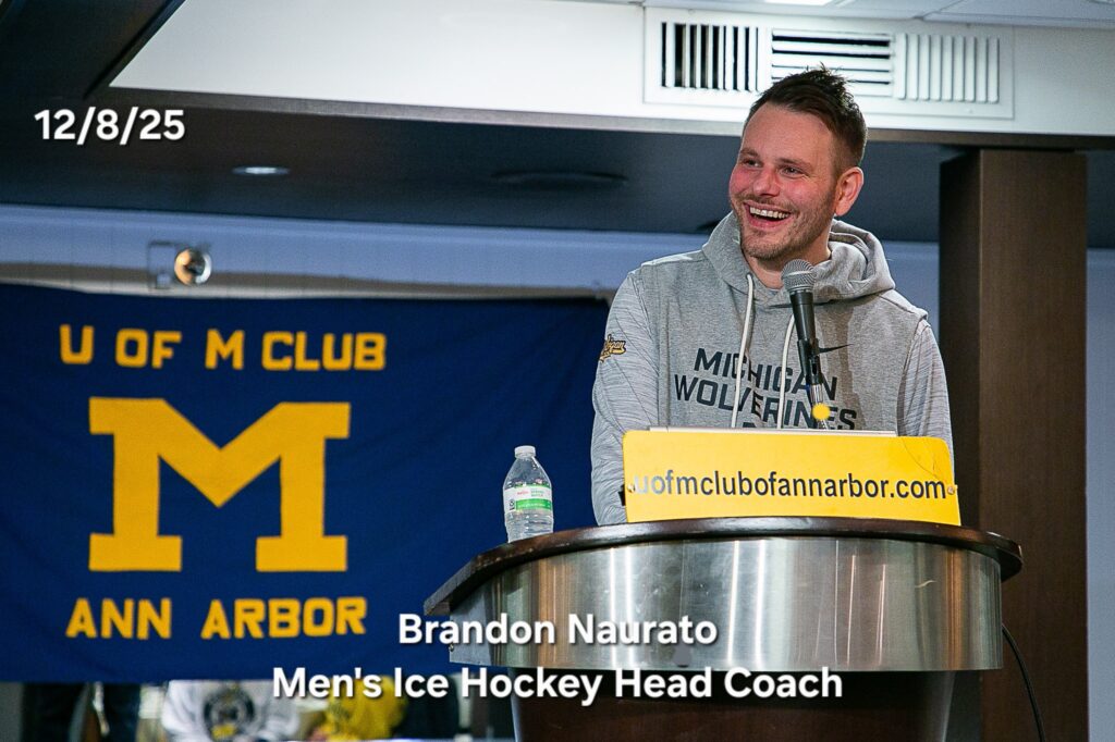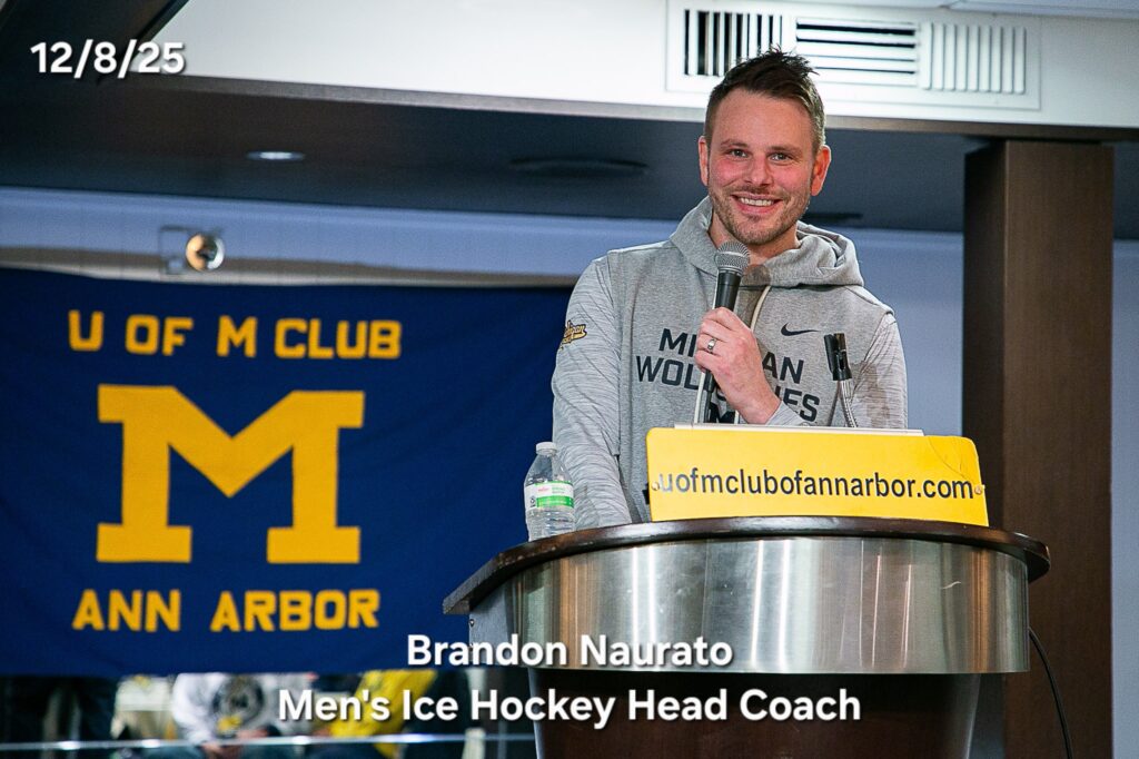 Our members enjoyed hearing from UM Hockey Head Coach Brandon Naurato (Click on Brandon's name to be taken to his bio on mgoblue.com). He was named the Graham Family Head Ice Hockey Coach on March 31, 2023 after a season as interim head coach. He guided the Wolverines to back-to-back Frozen Four appearances in his first two seasons. A 2009 graduate of the University of Michigan, Naurato posted the most wins (26) of any first-year Michigan head coach in program history before becoming the first to post consecutive 20+ win seasons to kick off his tenure. The current record for UM Hockey is 16 wins and 4 losses with the next home game on January 3, 2026 when they take on the U.S. NTDP U-18 Team.