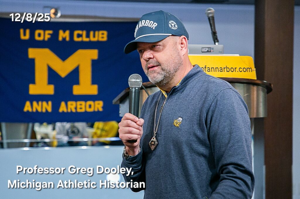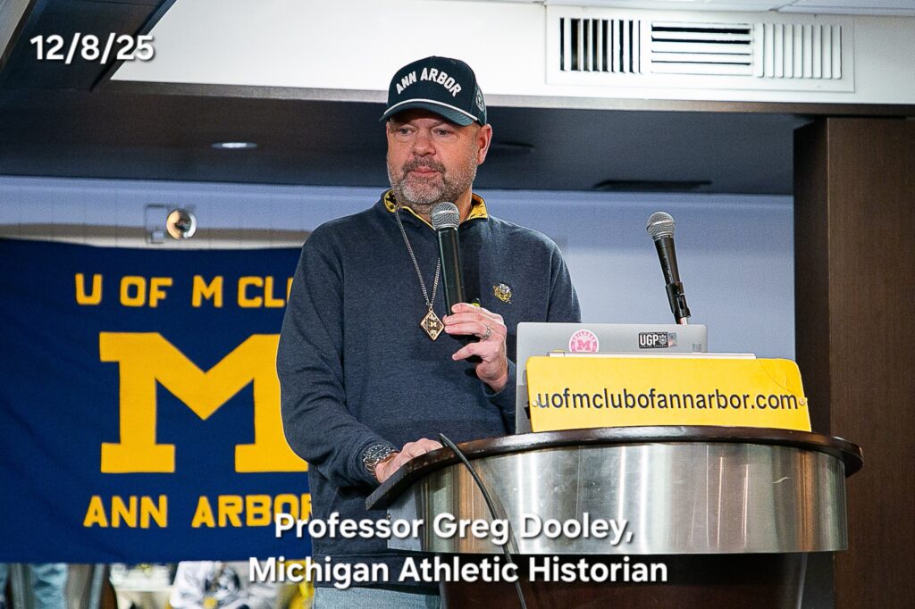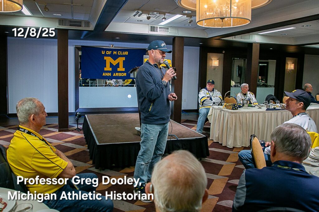 Our next speaker was Michigan Athletic Historian Greg Dooley. He gave us a very lively, but short version, of the history of Michigan Athletics. Greg has provided the club a link to his website so that you can follow his work or sign up to get updates of his upcoming on-line class. Greg has gotten a lot of interest in the upcoming on-line class. Just click on his name here, Greg Dooley, to be taken to his site.