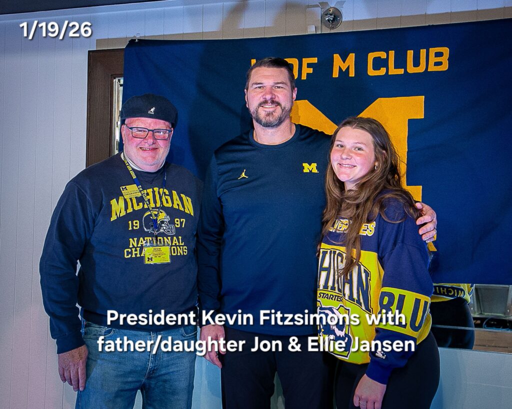 President Kevin Fitzsimons showing off the new M Club of Ann Arbor decals and also sporting the new M Club of Ann Arbor ball cap. Be sure to get yours before they are gone!