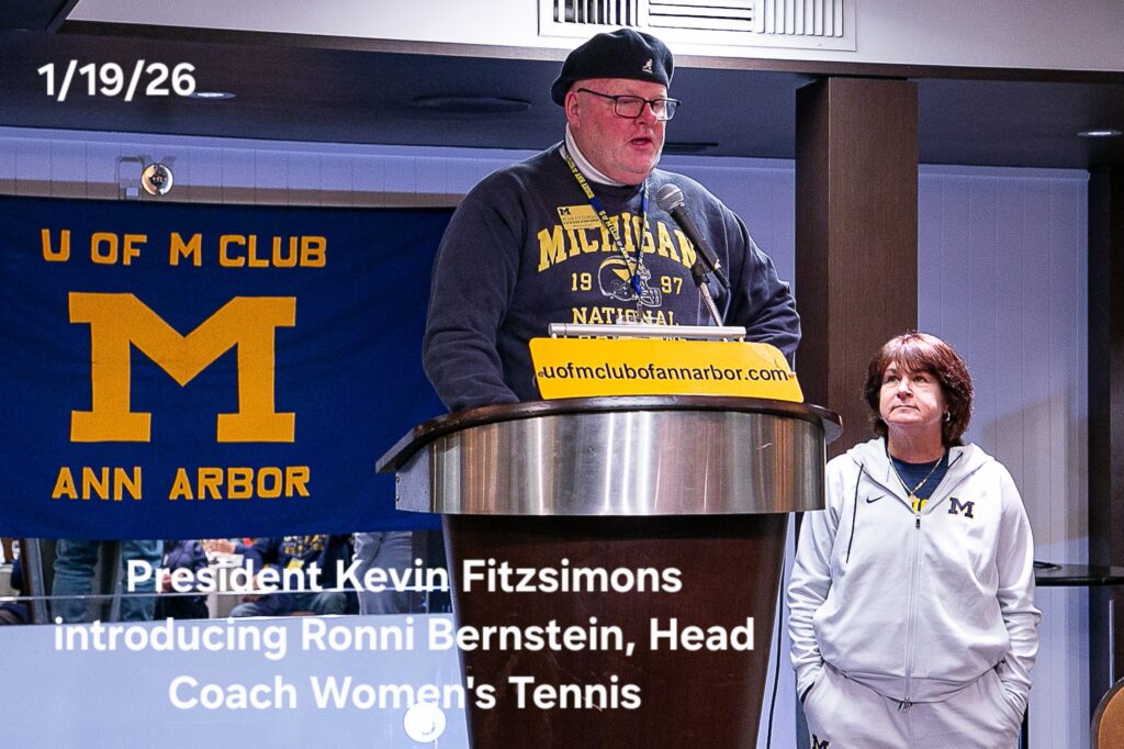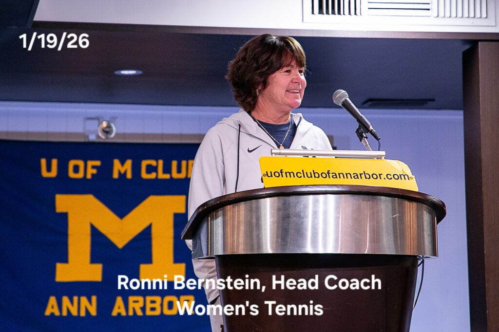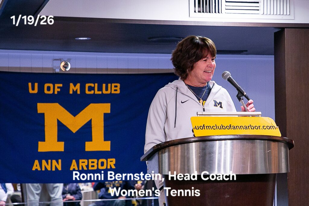 Jon was followed by a professional in her own right, Ronni Bernstein, Head Coach for Women's Tennis. The 2025-2026 season is Ronni's 19th season at the Universtiy of Michigan. Ronni has guided the Maize and Blue to 12 Big Ten championships, six Big Ten Tournament titles, 12 NCAA Sweet 16 appearances, four trips to the NCAA Quarterfinals (2016, 2023, 2024, 2025) and the program’s first Final Four (2025) during her tenure. The spring season of Women's Tennis is just getting started with their next match on 1/24/26.